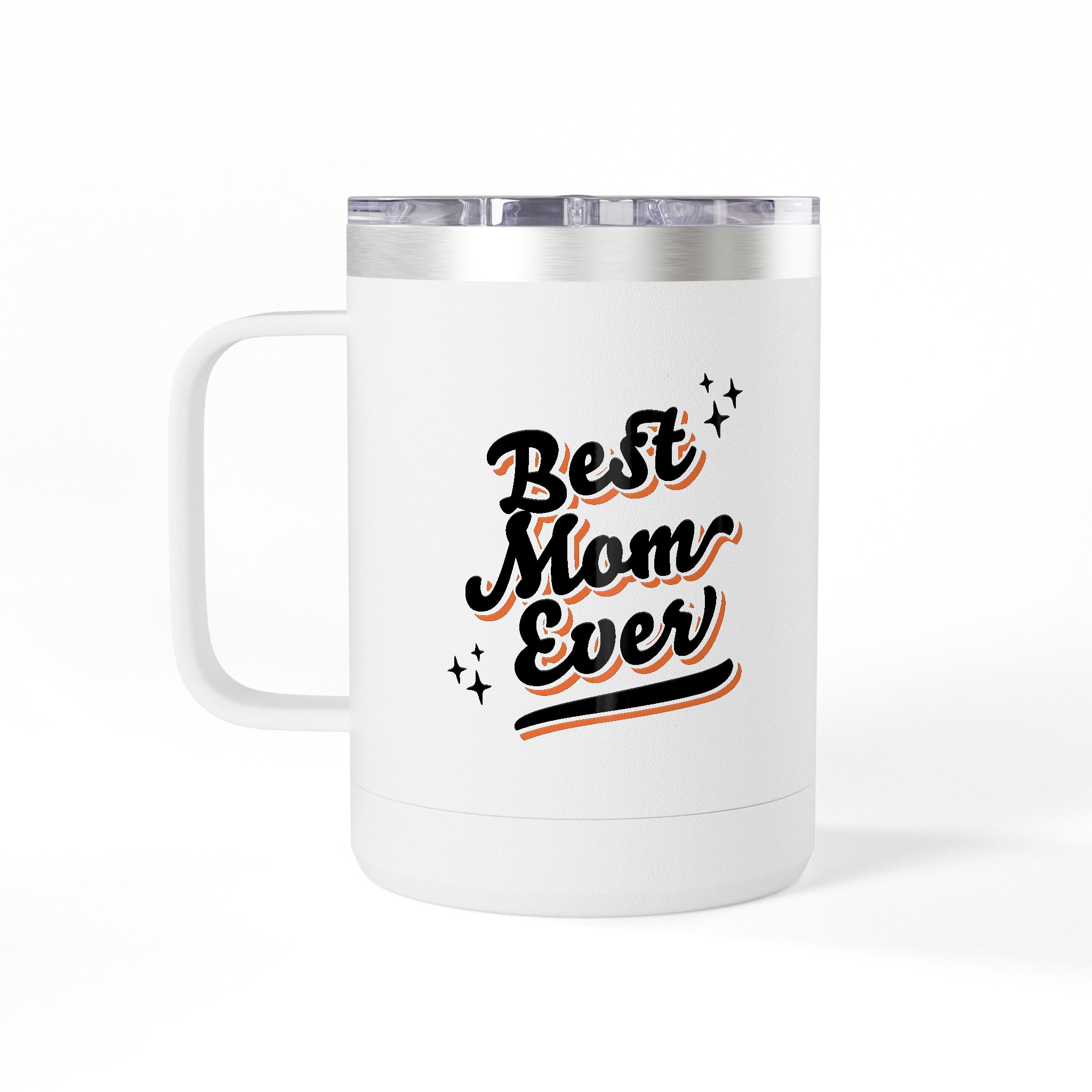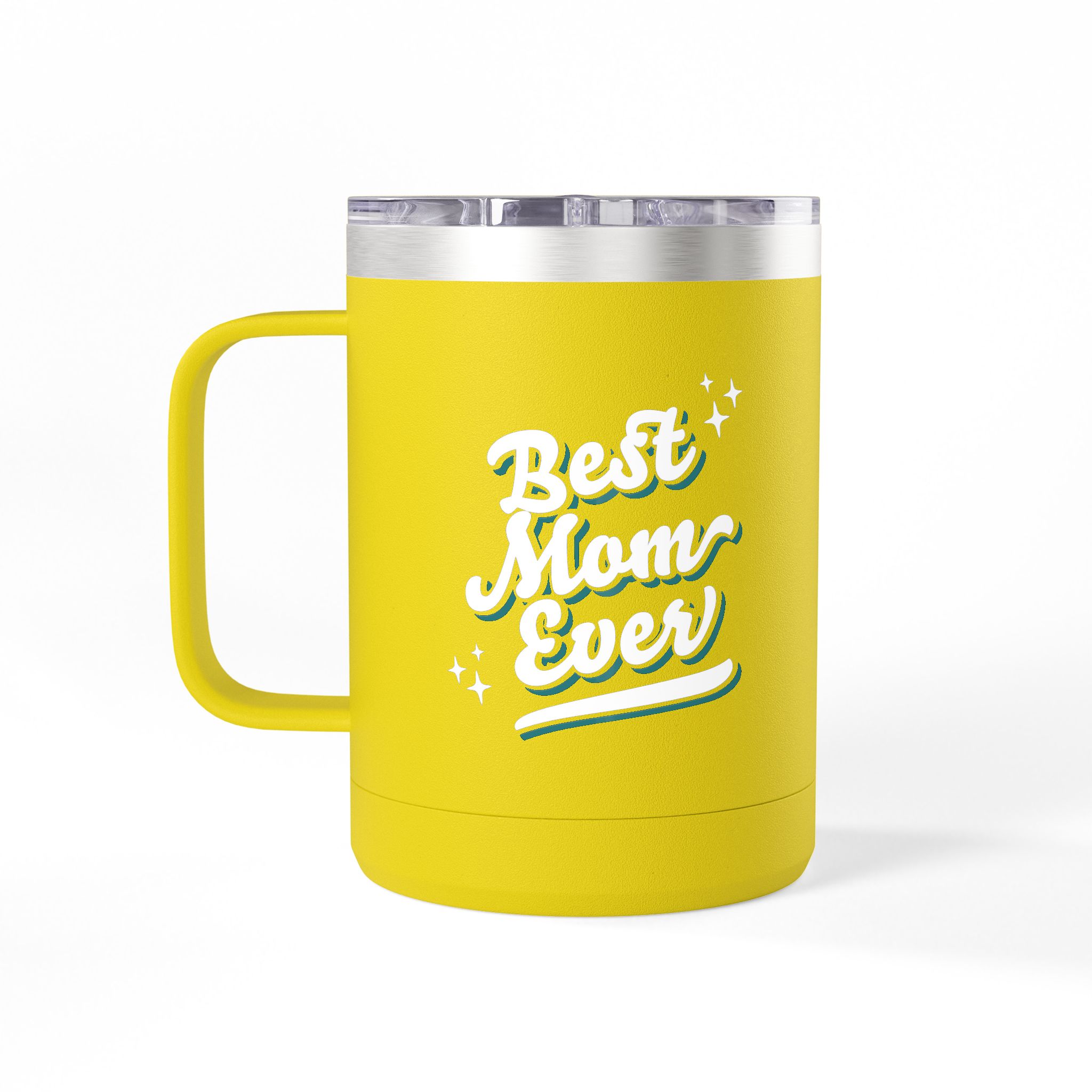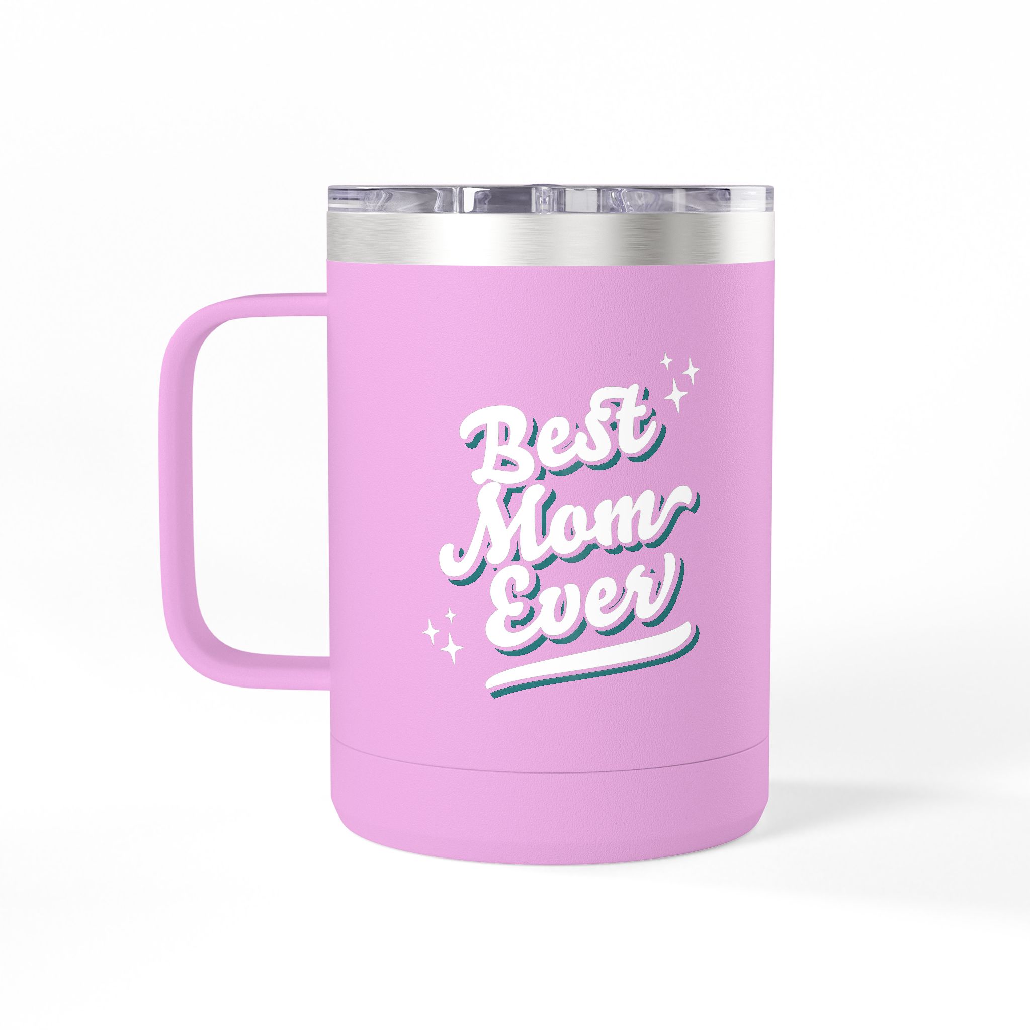 Great travel mug gift for the best Mom Ever! Mom will love this for Mother’s Day, birthday, or for any day. This 15oz stainless steel tumbler brings warmth to mornings and steadiness to long days. Double-wall insulation holds coffee hot and iced drinks cold for hours, while the ergonomic handle and leak-proof lid make it easy to carry between meetings, the shop, or the trailhead. The powder-coated finish with glossy print gives the cup a clean, modern look that stands up to daily use. Lightweight yet durable, it feels substantial in hand and resists rust and wear — a reliable companion for anyone who treats their drink as part of the ritual.