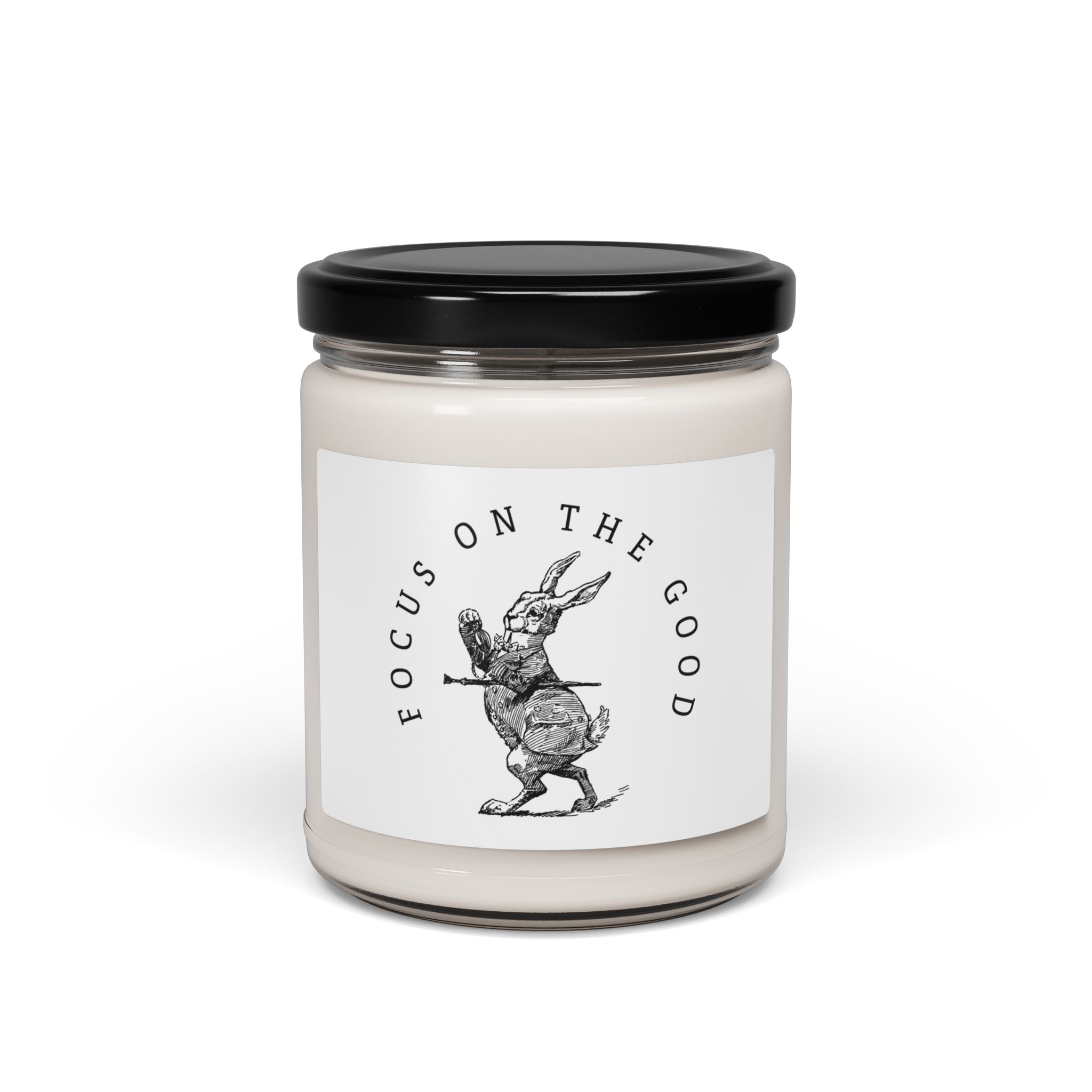 Spread a positive message with this “Focus on the Good” cute vintage bunny candle. Light this 9oz soy candle and let a calm, intentional moment unfold. Hand-poured into a reusable glass jar with a glossy label, it offers 50–60 hours of clean-burning illumination. Choose from twelve thoughtfully blended scents—from crisp Apple Harvest and cozy Christmas Warmth to bright Peppered Passionfruit, soothing White Sage + Lavender, oceanic Atlantis Whisper, and a fragrance-free Unscented option. Each recipe uses natural essential oils for layered, authentic aroma without synthetic nasties. The jar wipes clean after use and becomes a simple accent for a windowsill or desk, while the cotton wick and soy wax deliver an even, non-toxic burn that follows ASTM safety guidelines.